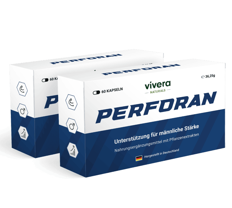 Die Webseite beschreibt Perforan als ein natürliches Nahrungsergänzungsmittel für Männer, das Energie, Ausdauer, Vitalität und Leistung im Alltag — auch im Intimbereich — steigern soll.